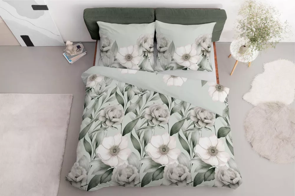 5220 B Pościel satynowa Romantyczna Magnolia Detexpol zielony