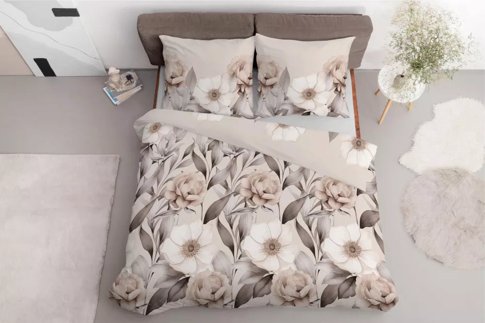 5220 A Pościel satynowa cieniowane kwiaty Detexpol beżowy