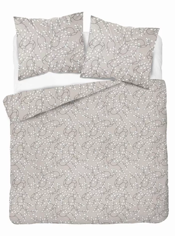 5217 B Pościel satynowa  liście drobne Detexpol beżowy