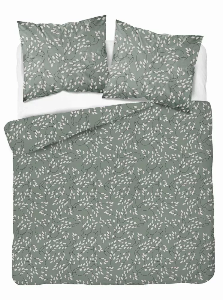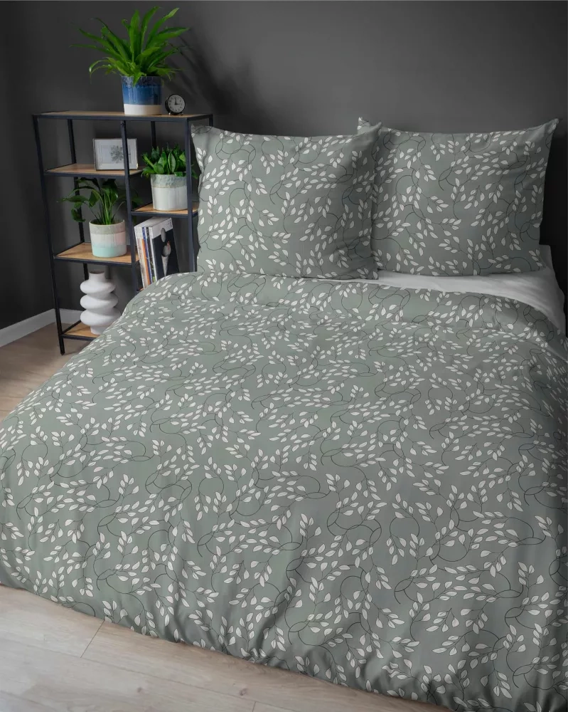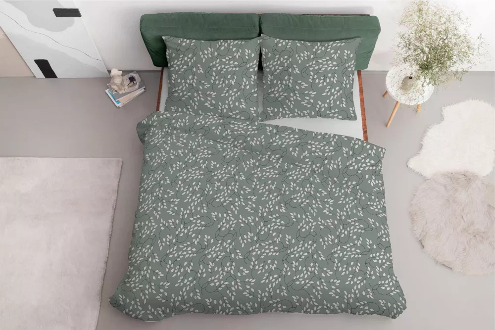 5217 A Pościel satynowa  liście drobne Detexpol szałwiowy