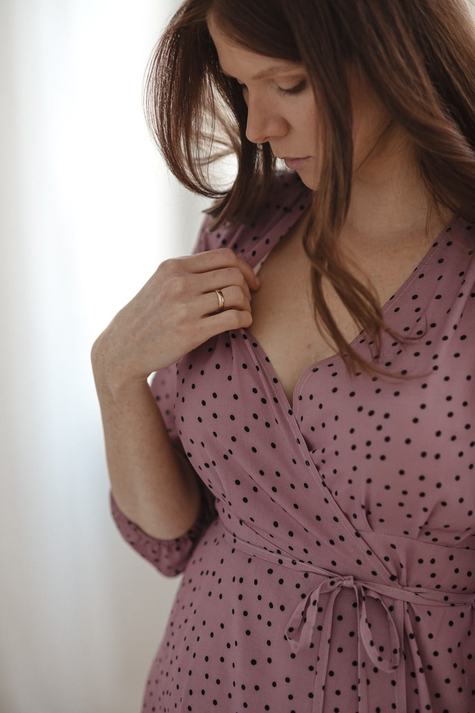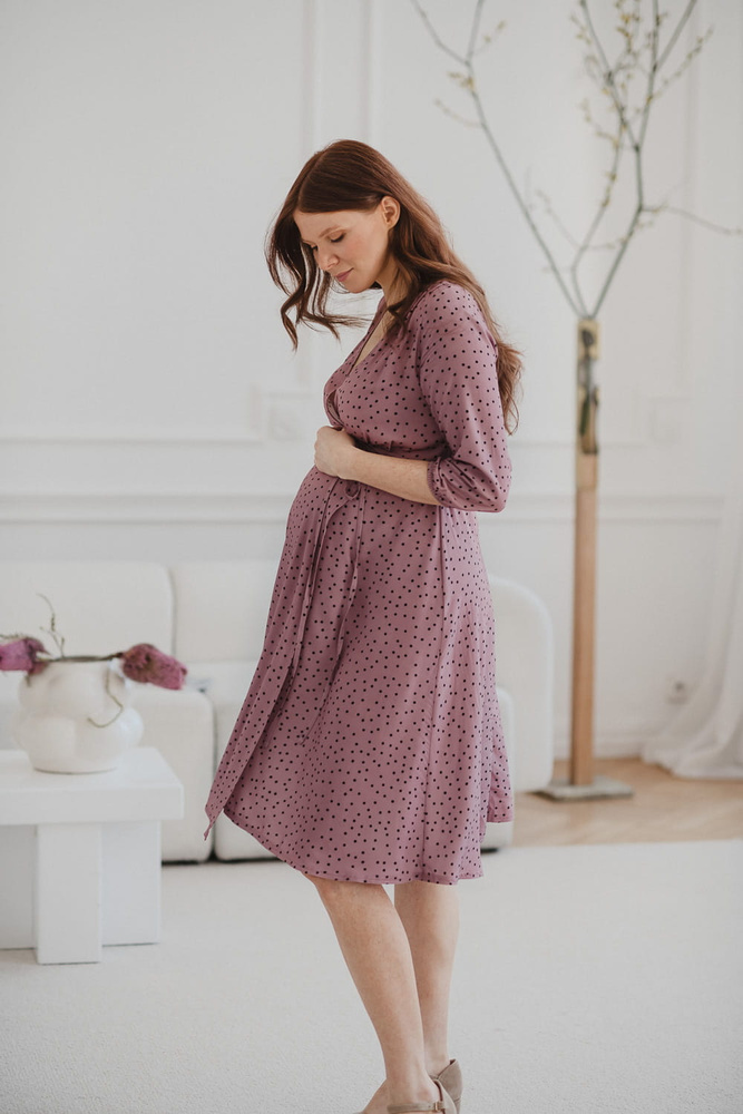 Milk Shake sukienka ciążowa i do karmienia rękaw 3/4 Milk&Love liliowa w groszki