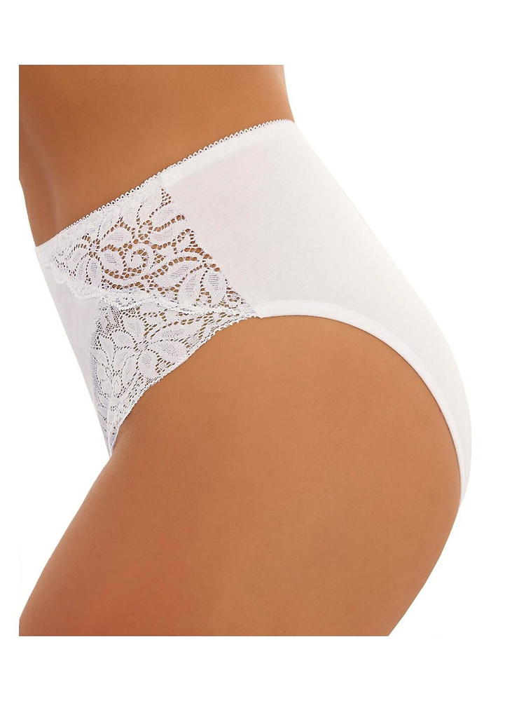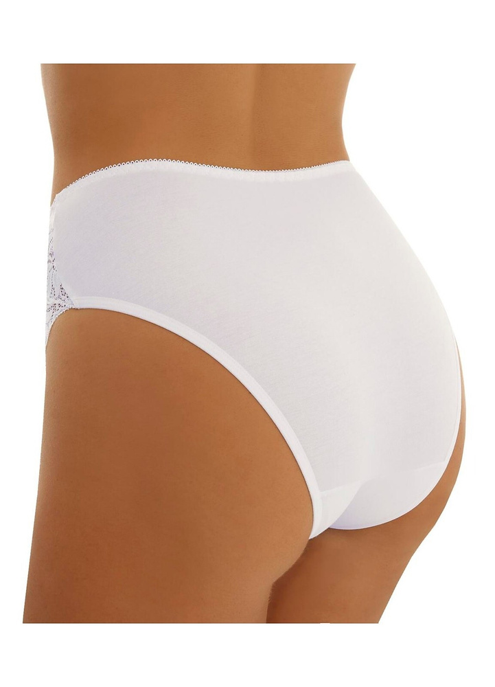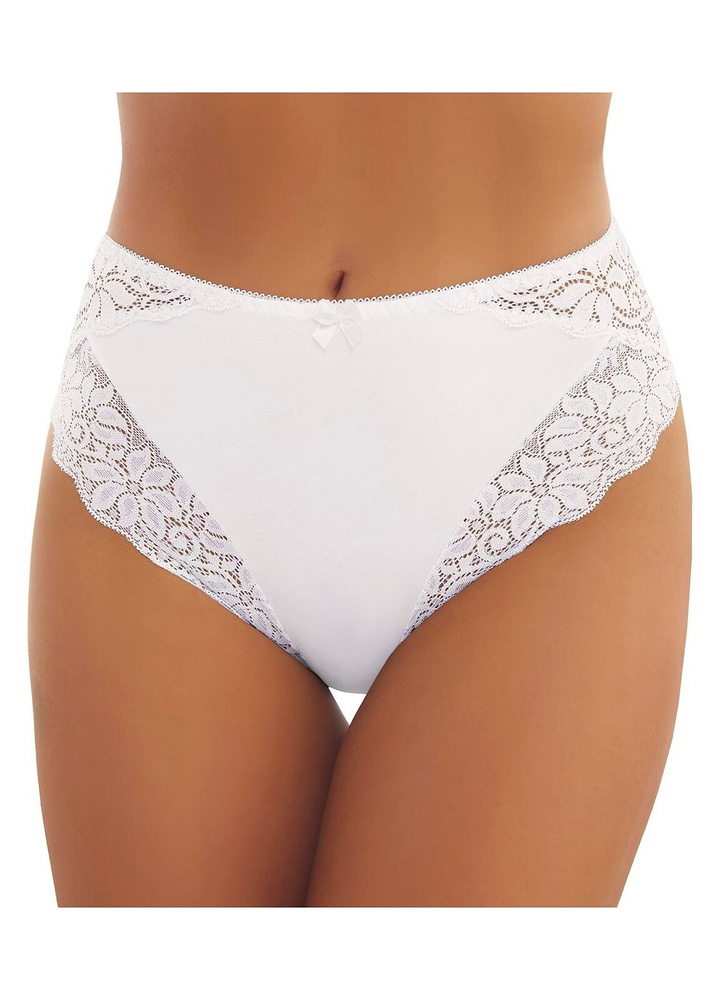 Zabudowane, wysokie figi damskie. Wykonane z gładkiej bawełny w połączeniu z ażurową koronką