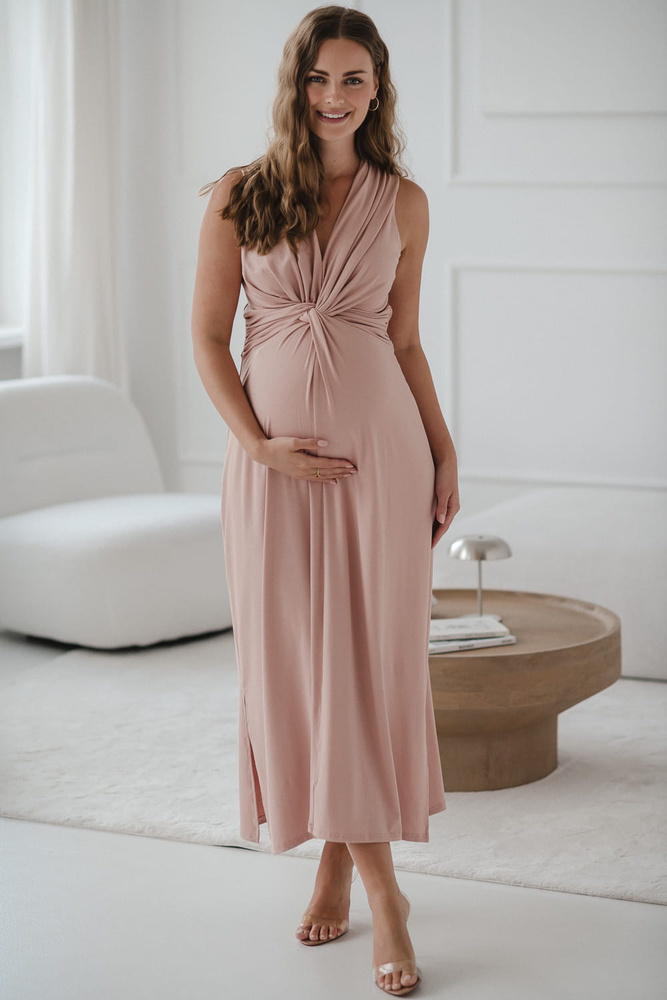 Loop maxi sukienka ciążowa i do karmienia Milk&Love pudrowy róż