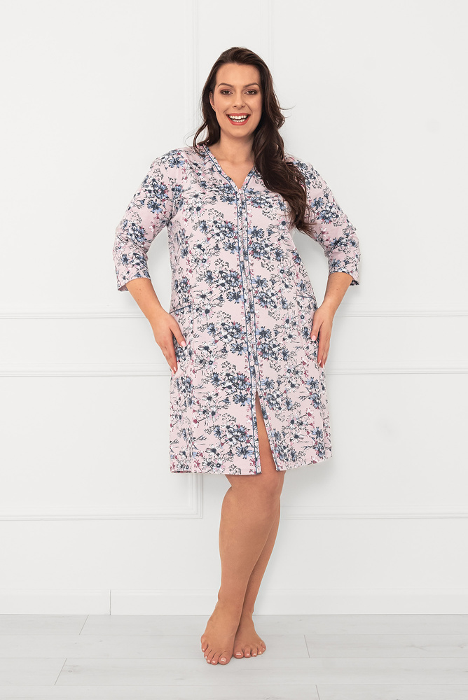 země výroby: POLSKOTento dámský domácí plášť je ideální volbou pro ty, kteří si cení pohodlí a stylu domova. Zapíná se na zip, má výstřih do V zakončený kontrastním lemováním a kombinuje funkčnost s decentním designem. 3/4 rukávy zajišťují pohodlí ve všech ročních obdobích a délka ke kolenům zaručuje plnou volnost pohybu. Na přední straně jsou praktické kapsy, které zvyšují její funkčnost. Vyrobeno z bavlněného úpletu s květinovým vzorem v pastelových odstínech. K dispozici ve velikostech M až XXXL.