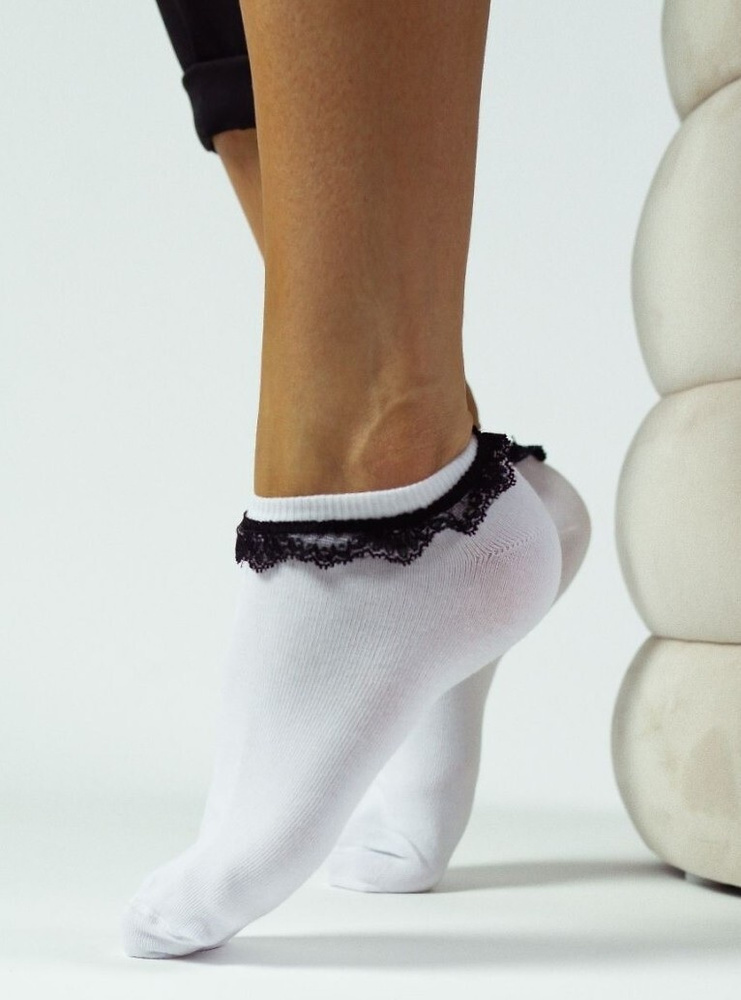Bavlněné dámské ponožky s ozdobným krajkovým žebrováním.