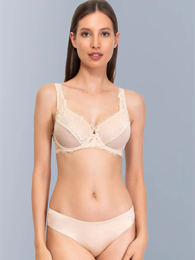 2442 Podprsenka Wonderlace - krajková, měkká, s kosticí a nastavitelnou velikostí Sielei béžová