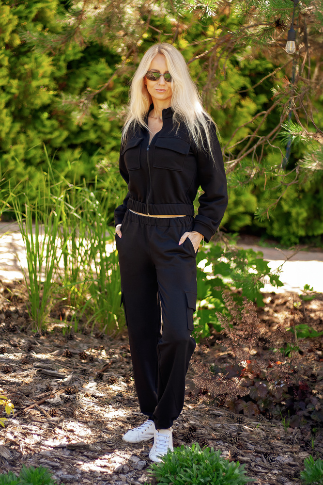 Bavlněná dámská tepláková souprava Mili Mirale s kapsami - polská výroba - černá