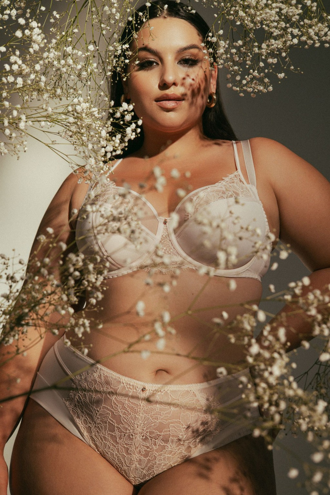 Šálky typu poloměkké (polovyztužené) dokonale tvarují poprsí, poskytují přirozený tvar a optimální oporu. Spodní část košíčků je jemně vyztužená, zatímco horní část je vyrobena z krásné, lehce průhledné krajky, která celku dodává romantický nádech.