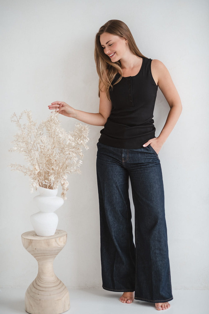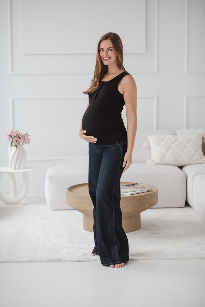 Černé těhotenské a kojící tričko Tummy v módním žebrovaném designu je ideální volbou pro nastávající a čerstvé maminky. Vyrobeno z elastické, prodyšné bavlny pro celodenní pohodlí - během těhotenství i kojení. Praktický design bez ramínek s diskrétním přístupem k prsu usnadňuje krmení vašeho děťátka v jakékoli situaci. Stylový střih se přizpůsobí rostoucímu bříšku a krásně zvýrazní siluetu po porodu. Hodí se jako základ pro každodenní i letní vzhled.