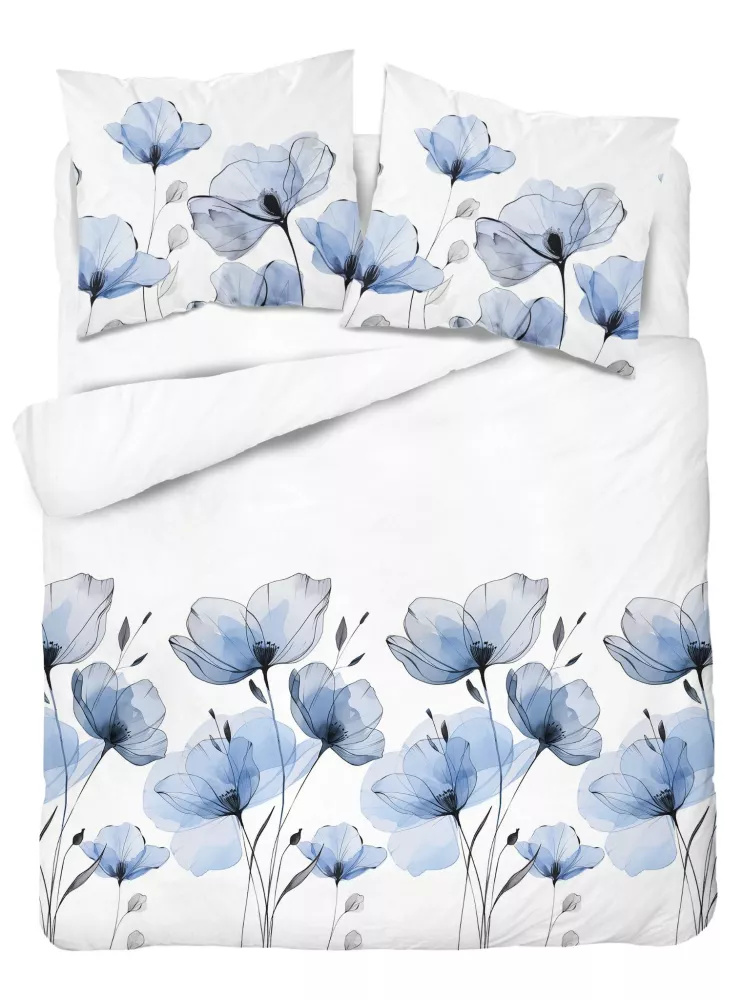 5496 A Bavlněné ložní prádlo bílé s akvarelovými modrými květy Naturalis- Detexpol