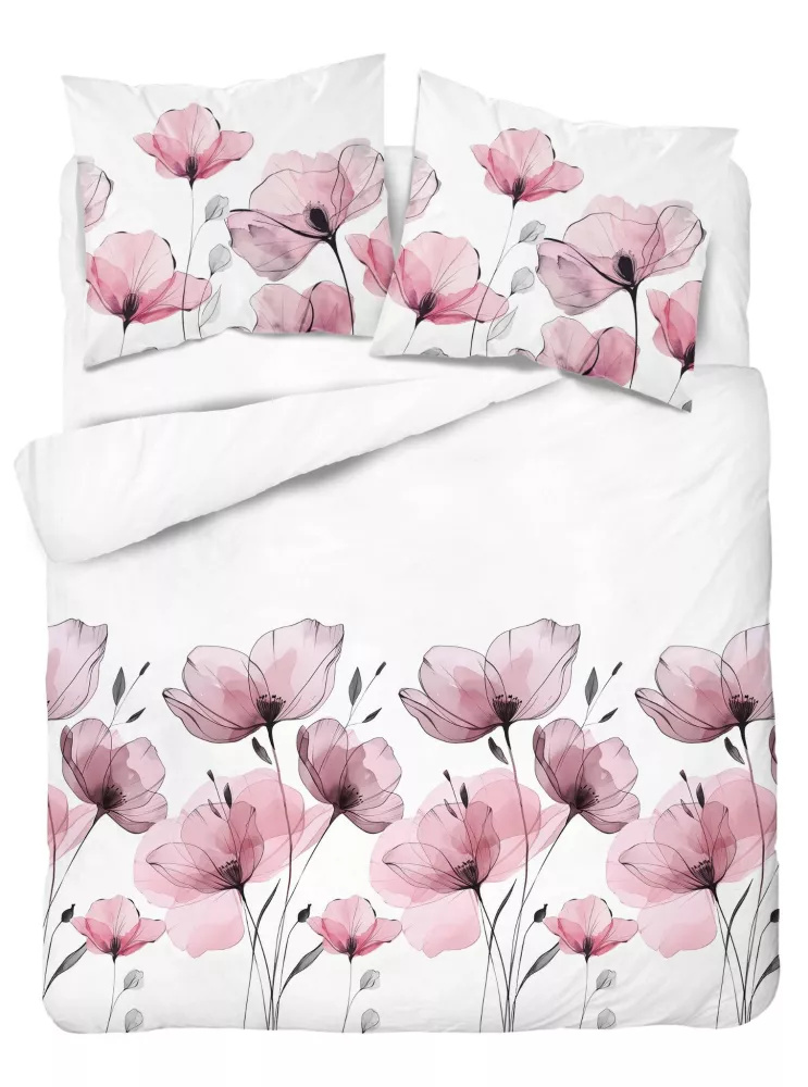 5496 B Bavlněné povlečení bílé s akvarelovými růžovými květy Naturalis- Detexpol