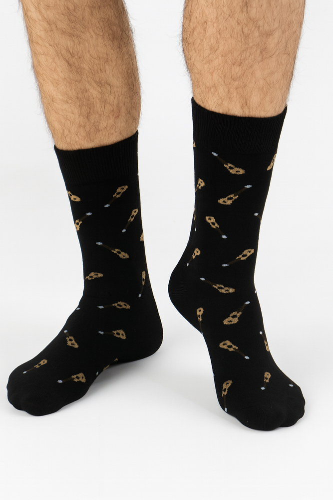 - Pánské bavlněné ponožky s motivem kytary. Pohodlné, beztlakové, s plochými švy.