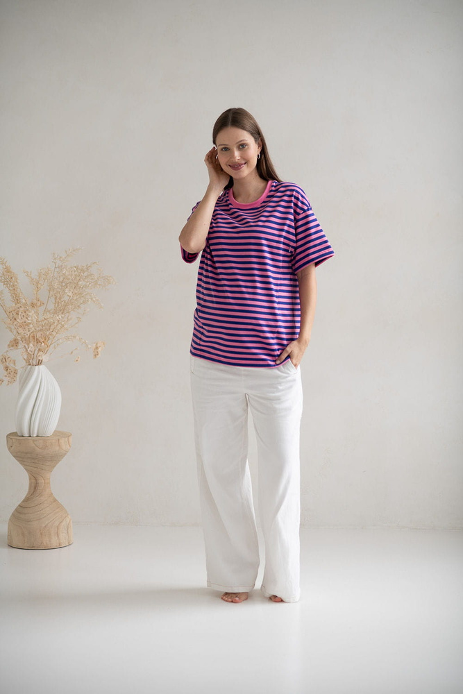 Mamahood Milk&Love růžové a modré pruhované těhotenské a kojící tričko - pohodlné a stylové