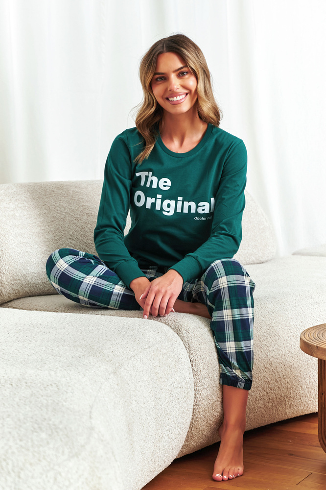 Dámské pyžamo Doctor Nap 7340 je pohodlná souprava ideální pro všechna roční období. Bavlněná halenka s dlouhými rukávy a potiskem "The Original" v kombinaci s kostkovanými kalhotami vytváří klasický a zároveň moderní vzhled. A co je důležité - model 7340 lze doplnit jako pyžamo pro celou rodinu: maminka, tatínek a dítě mohou spát ve stejných soupravách! Polská výroba je zárukou vysoké kvality a pečlivého zpracování.