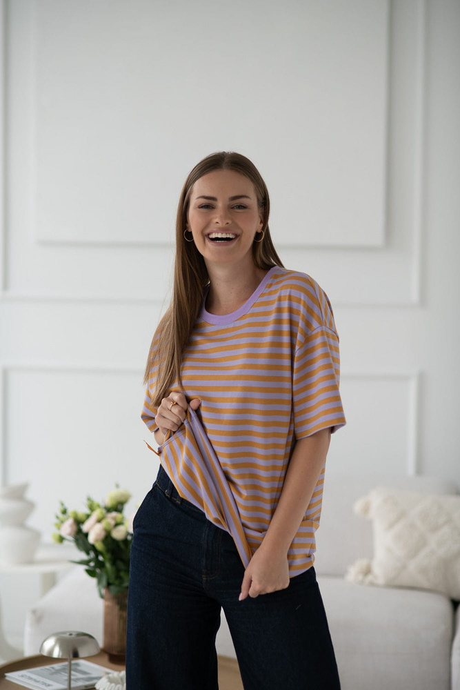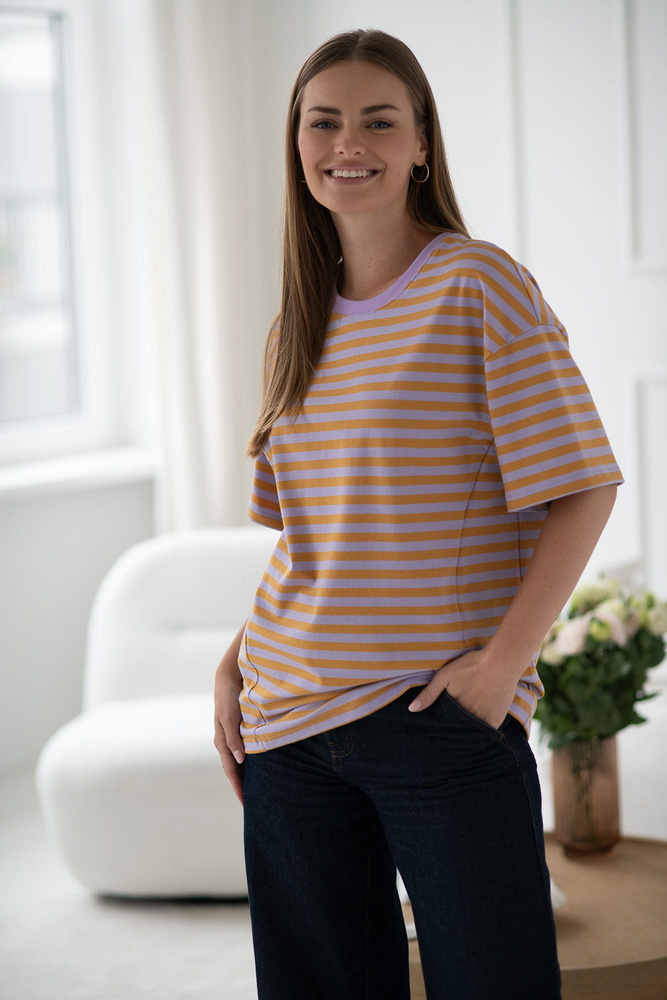 Mamahood Těhotenské a kojící tričko Milk&Love medové a lila pruhy - pohodlné a stylové
