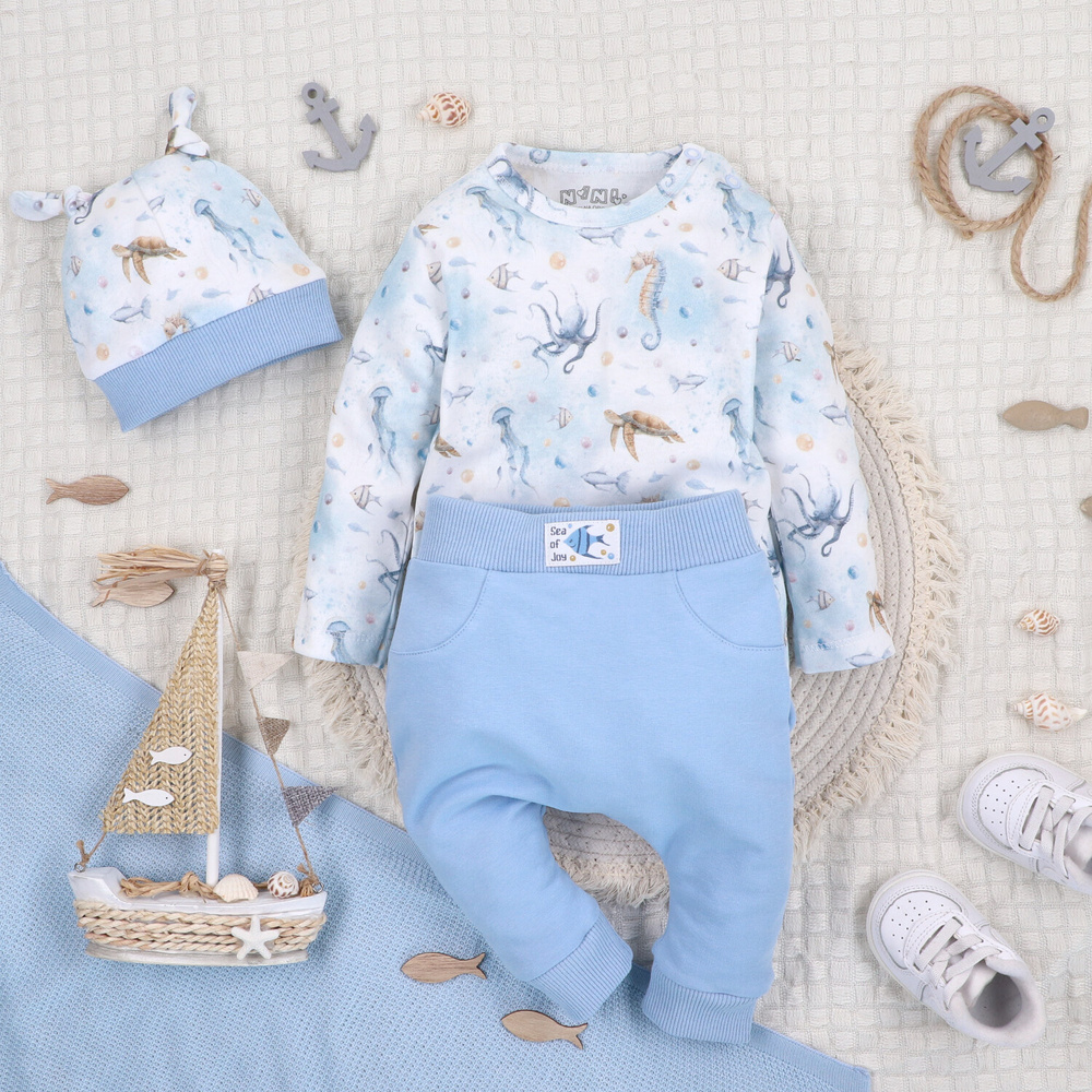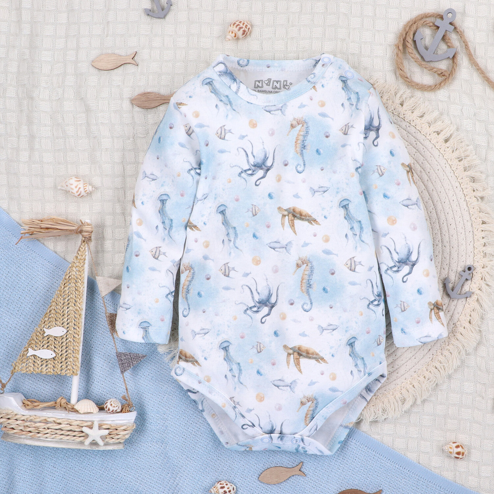 • Kojenecké body Nini Sea Of Joy - 100% organická bavlna, dlouhý rukáv, pohodlné zapínání na patentky.