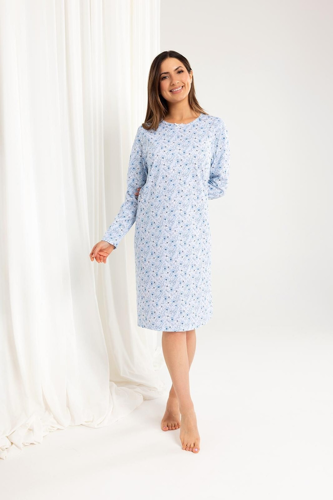 164 Regina noční košile modrá - dlouhý rukáv, klasický střih, pohodlí pro chladné noci