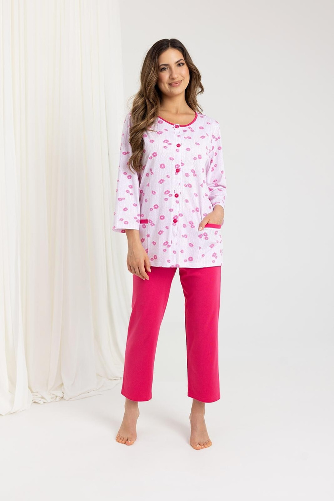 723 Dámské pyžamo Regina růžové - bavlna, 7/8 rukáv, knoflíky, pohodlí a styl