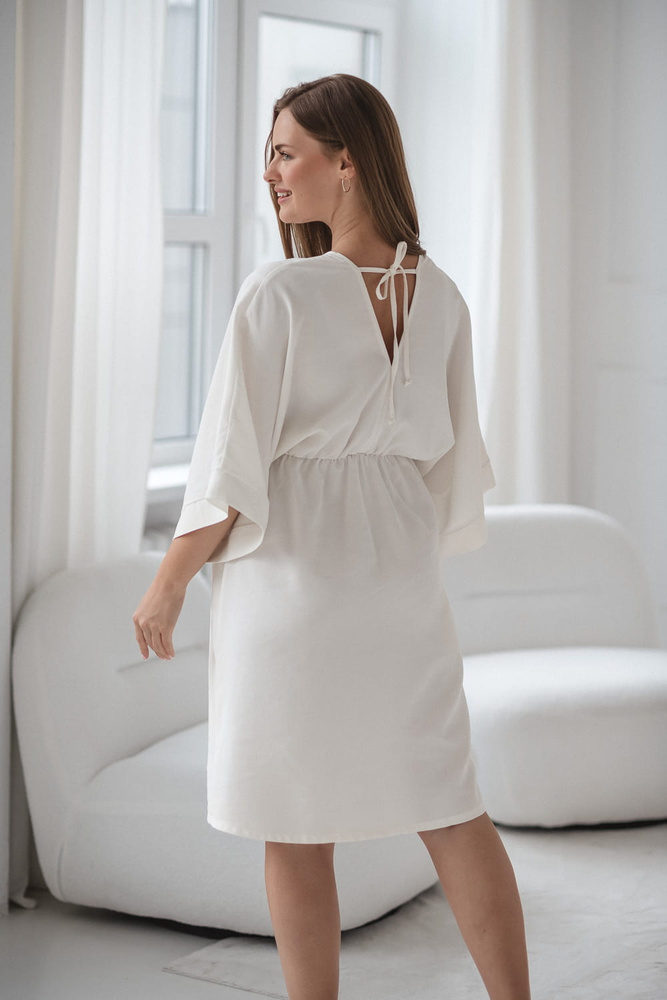 Mama Zen Milk&Love krémové těhotenské a kojící šaty - kimono se zipy, modal