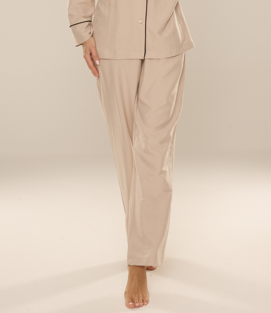 Maeve 875 De Lafense dámské pyžamové kalhoty - dlouhé, hladké, s kapsami - pískové