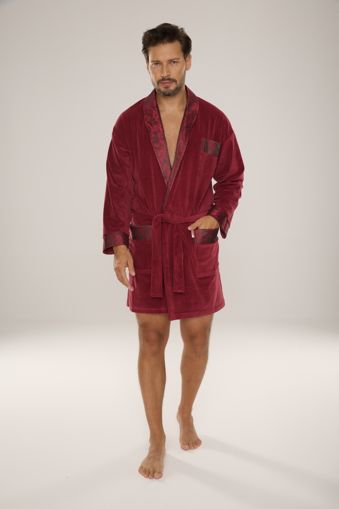 866 Noble Pánský velurový župan De Lafense - krátký, elegantní, bavlna - vínový
