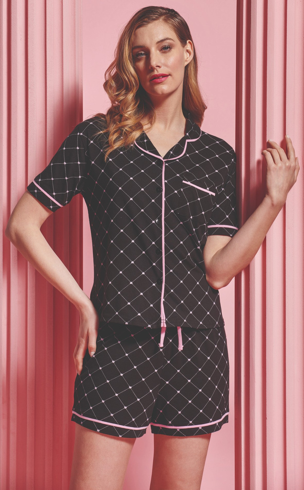 Coraline Dámské pyžamo Sorbetto černé - košilový top, krátké šortky, 100% bavlna