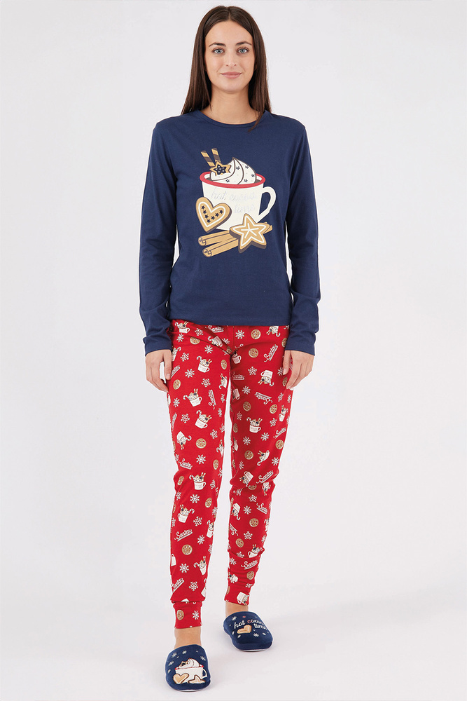 Natalie Sorbetto je dámské sváteční pyžamo, které spojuje pohodlí, teplo a zimní atmosféru. Je vyrobena ze 100% přírodního bavlněného úpletu a poskytuje pohodlí za chladných večerů a rán.
