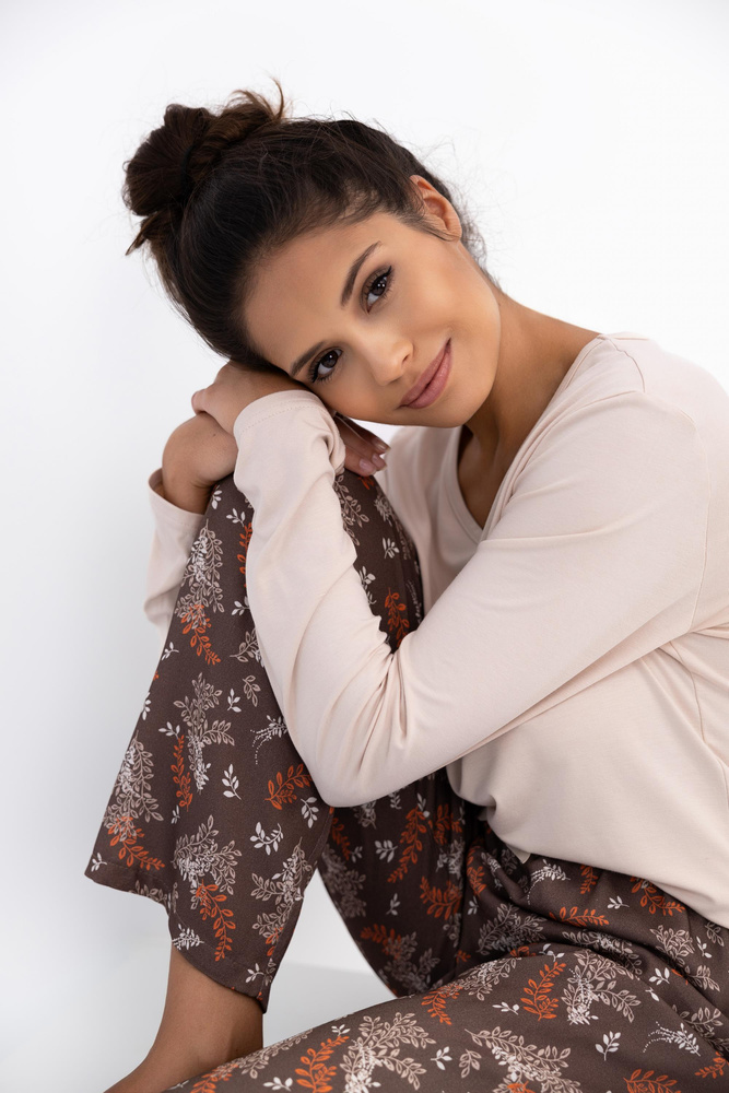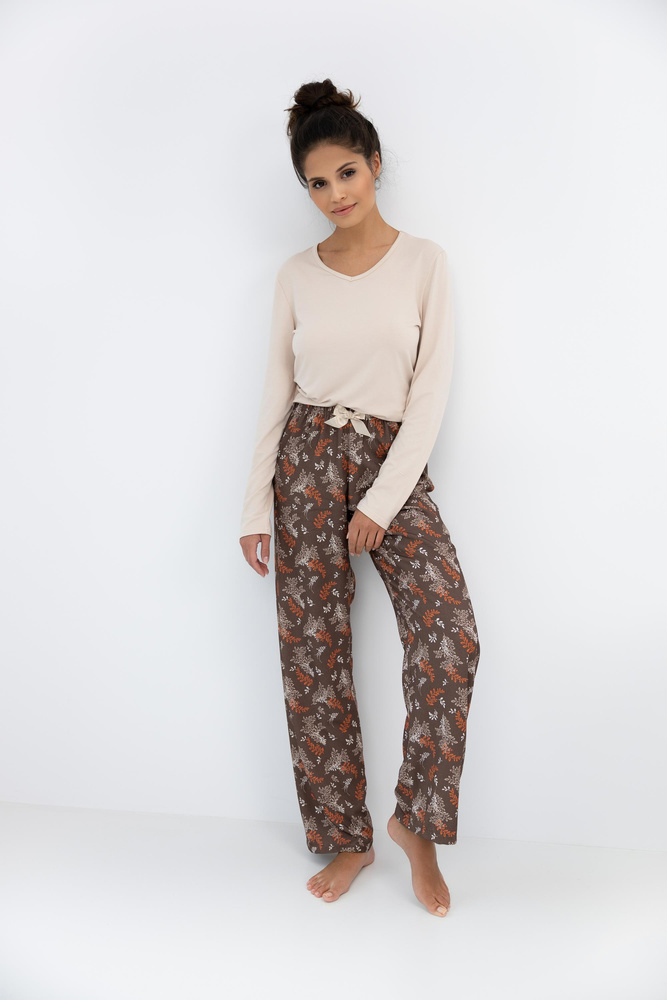 Dámské pyžamo Shelby Sensis - viskóza, tričko s dlouhým rukávem a vzorované kalhoty