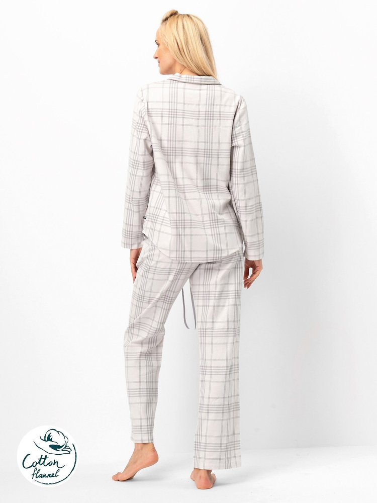 Dámská pyžama Klíč LNS 401 pro ženy, které ocení pohodlí a klasický styl nočního prádla. Vyrobeno z vysoce kvalitní bavlněný flanel, je měkká, příjemná na dotek a poskytuje tepelný komfort v chladnějších dnech a nocích.