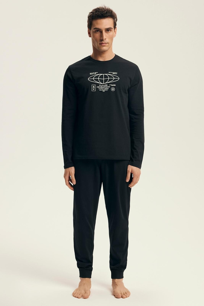 Henderson Core 43469 Loger pánské pyžamo černé - bavlna, dlouhý rukáv, elegantní balení