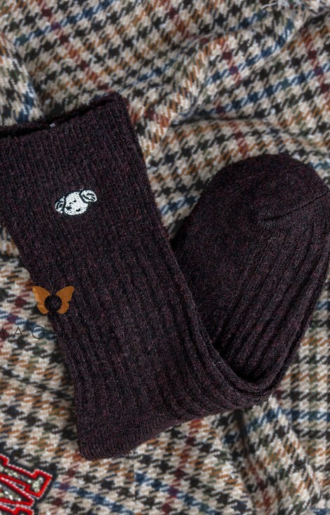 YN5035 Dámské teplé ponožky Magnetis hnědé - žebrované s aplikací