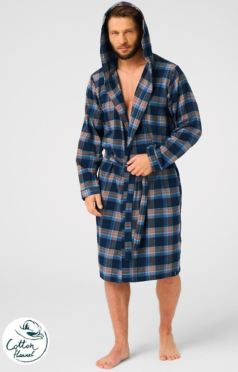 • Pánský měkký pletený župan Key MGL 431. Kostkovaný vzor, kapsy, pásek, šálový límec.