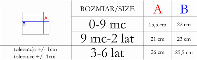 | Velikost | Obvod hrudníku | Obvod pasu |