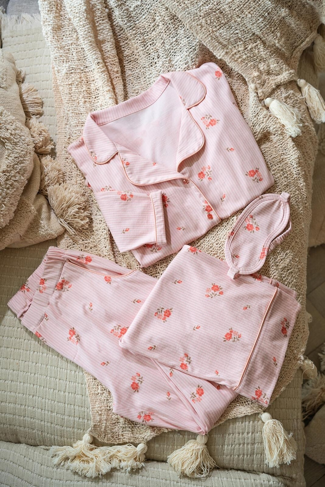 Model se zapínáním na knoflíky dodává pyžamu klasický nádech a jemný vzor Rose Devotion podtrhuje jeho jedinečný styl. Pyžamo bylo pečlivě ušito na míru, aby zajistilo naprosté pohodlí a atraktivní vzhled při domácí relaxaci.