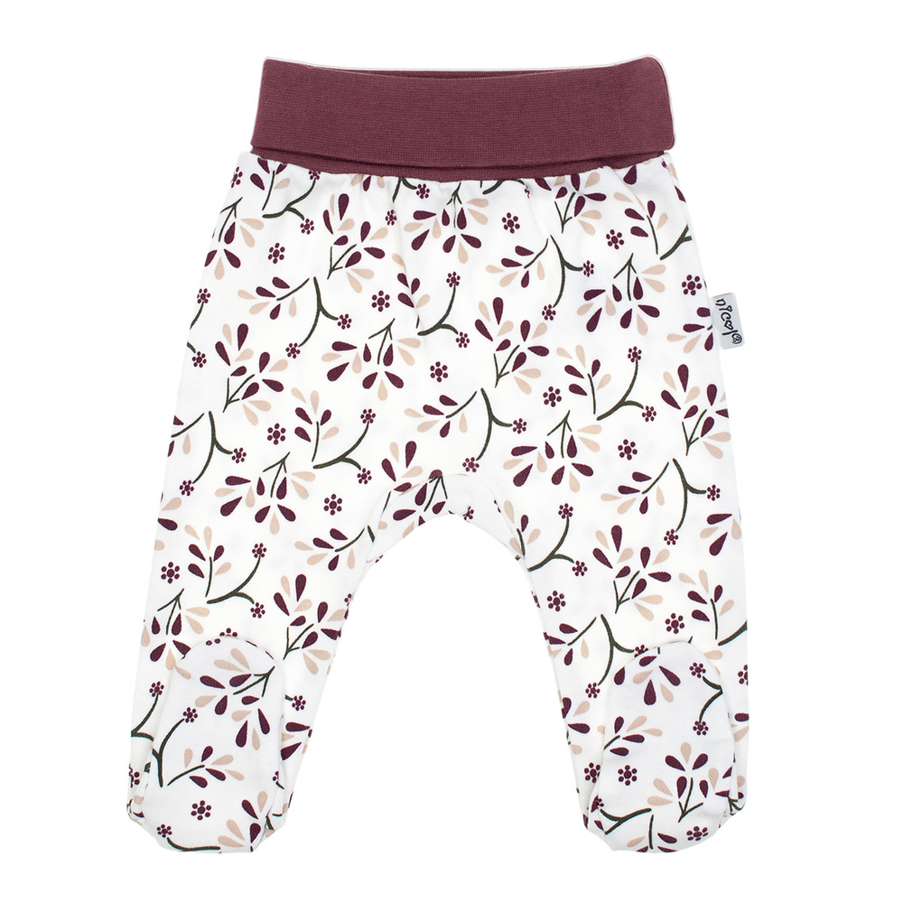 Široký elastický pas netlačí na bříško a všité nožičky chrání nožičky před chladem, takže není třeba používat další ponožky. Krásný květinový vzor dodává oděvu zvláštní kouzlo.