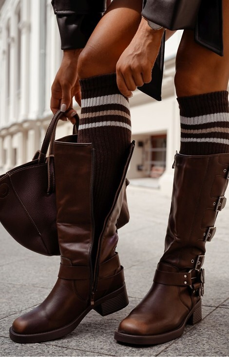 1610-001 Dámské podkolenky Milena hnědé pruhované, pruhované, pohodlné a stylové