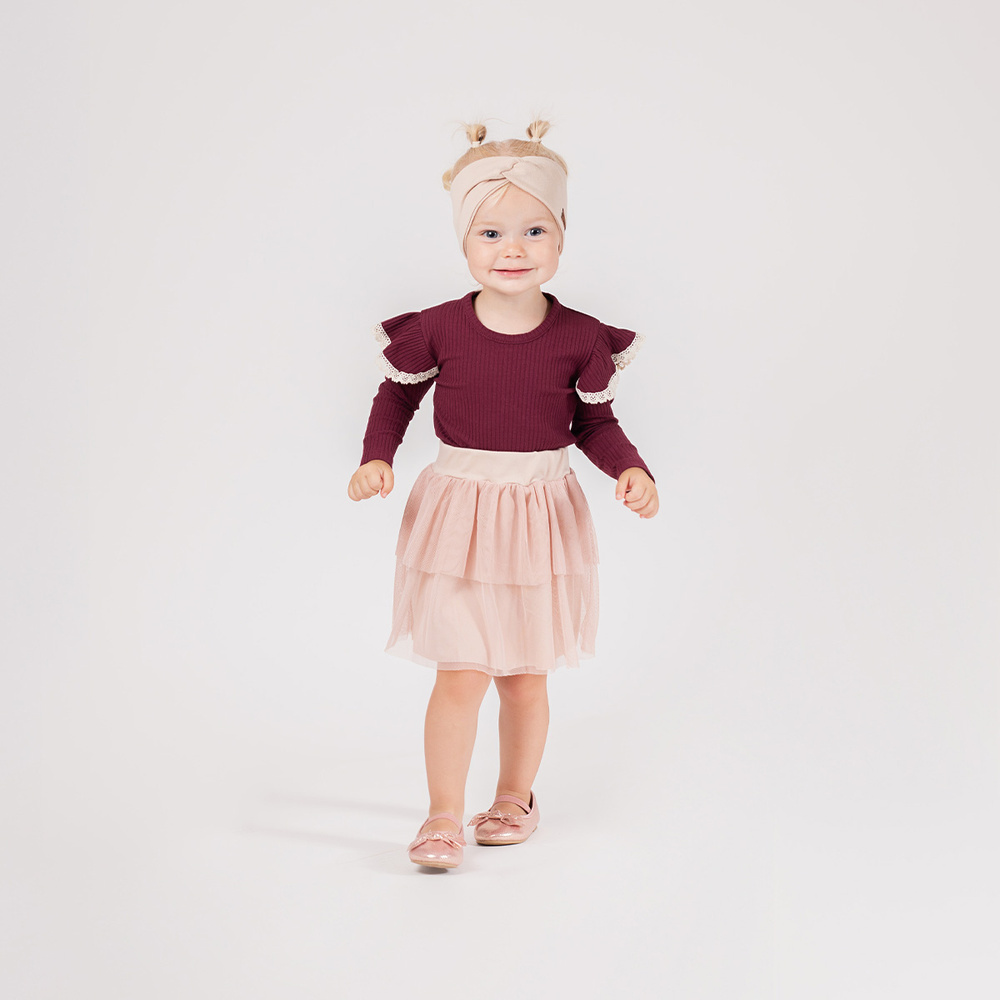 - Elegantní halenka Nicol z kolekce Alisa. Žebrovaná bavlna, vínová barva, dlouhý rukáv a ozdobné volány s krajkou.