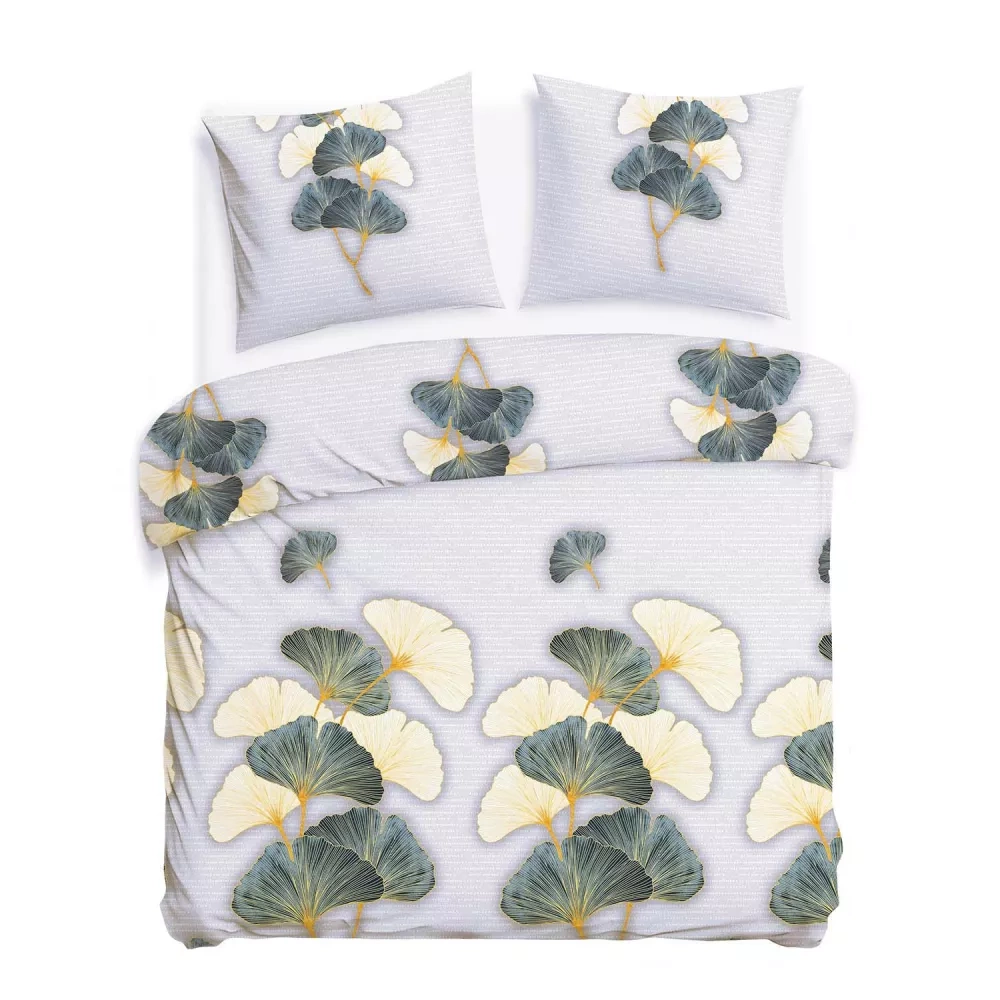 31510/1 Flannelove Darymex šedozelené listy ginkga - sada, 100% bavlna, hřejivá a měkká