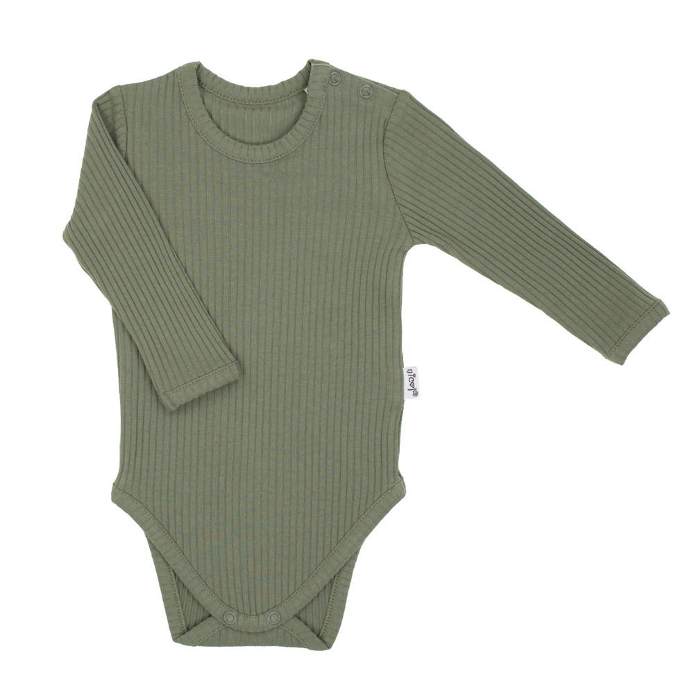 Zapínání na patentky na rameni a v rozkroku usnadňuje oblékání a přebalování dítěte. Díky dlouhému rukávu je toto body ideální pro chladnější dny a módní khaki barva.