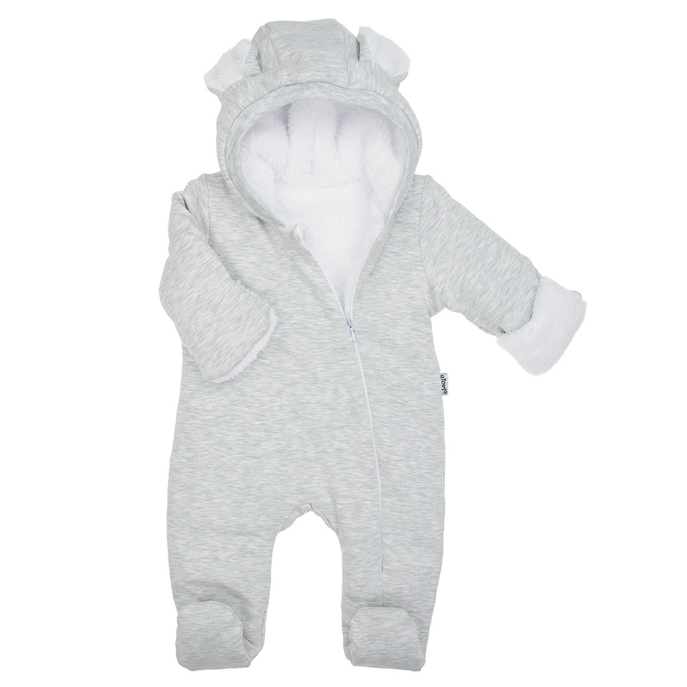 Model ve světle šedé barvě se vyznačuje půvabnýma ušima na kapuci, které celému vzhledu dodávají jedinečný šarm. Romper má zakryté nohy a ohrnovací rukávy. Dlouhý zip usnadňuje rychlou výměnu. Toto praktické a stylové oblečení pro nejmenší.