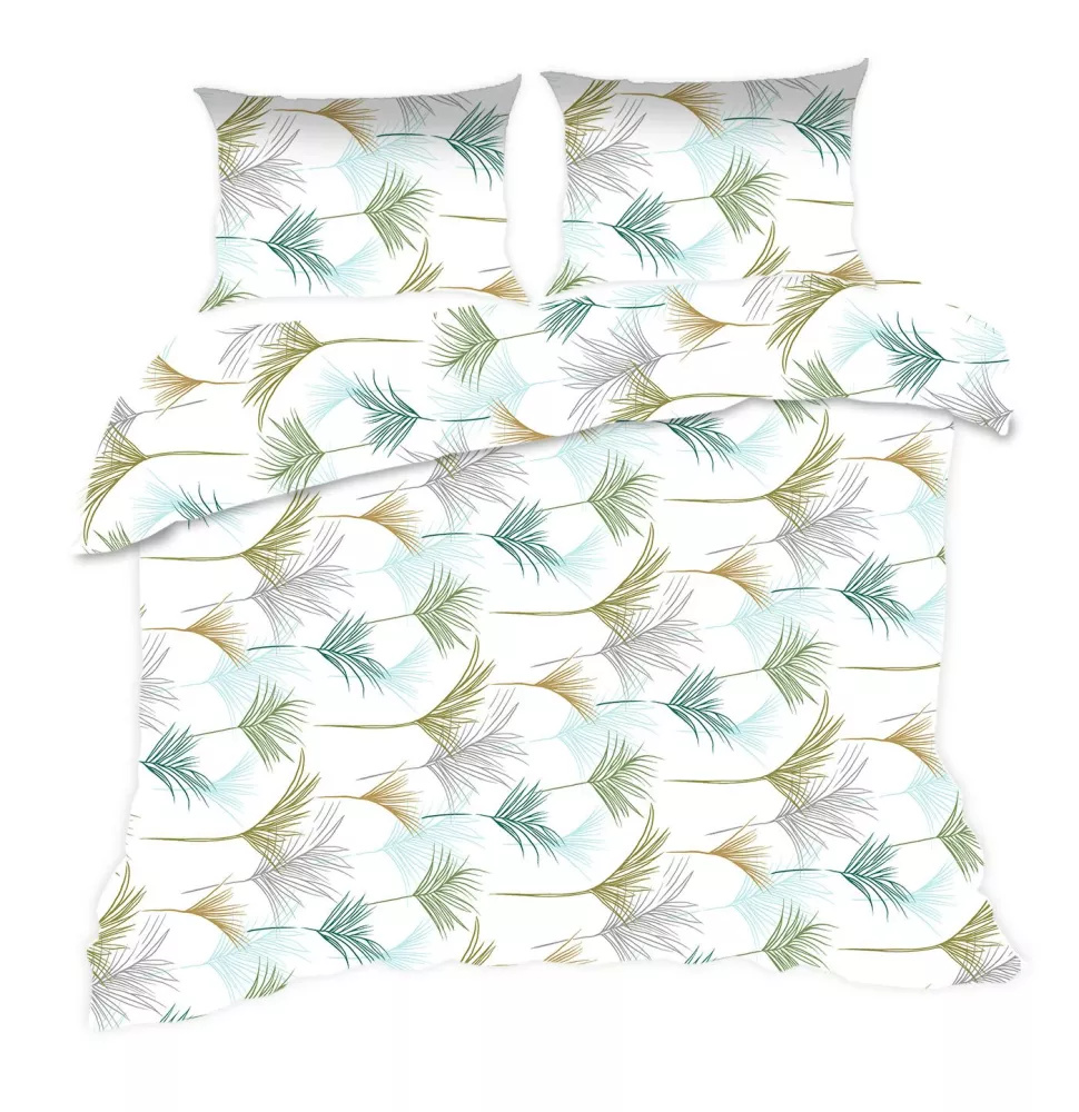 1816N Bavlněné povlečení Classic E24 Karo leaves white turquoise - 100% bavlna, odolné, barevné, 2dílná sada