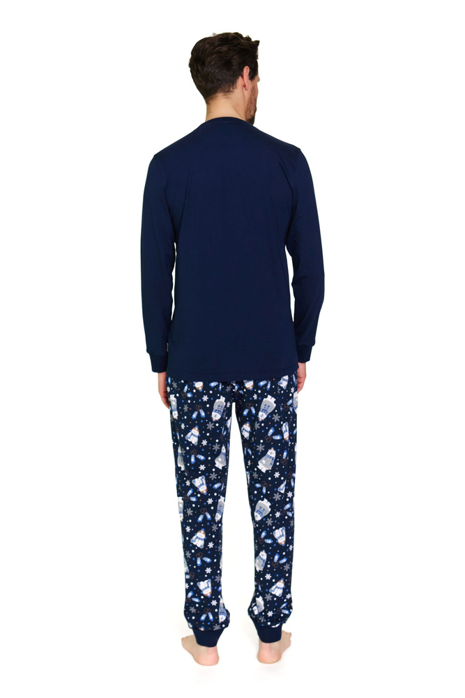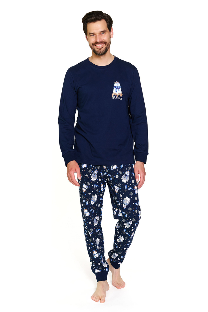 • Pánské pyžamo Doctor Nap 7338 Cozy Bear. Tričko s dlouhým rukávem a potiskem, kalhoty se zimním vzorem. 100% bavlna.