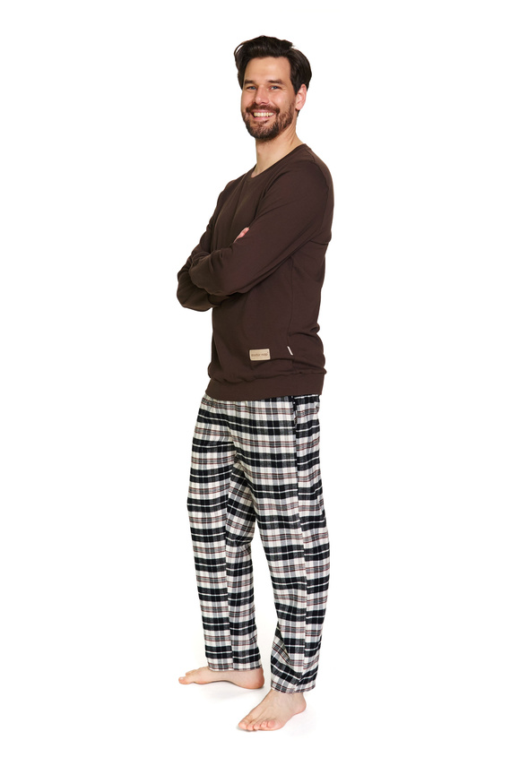 7334 Pánské pyžamo Doctor Nap - bavlna a flanel, hnědý kostkovaný vzor