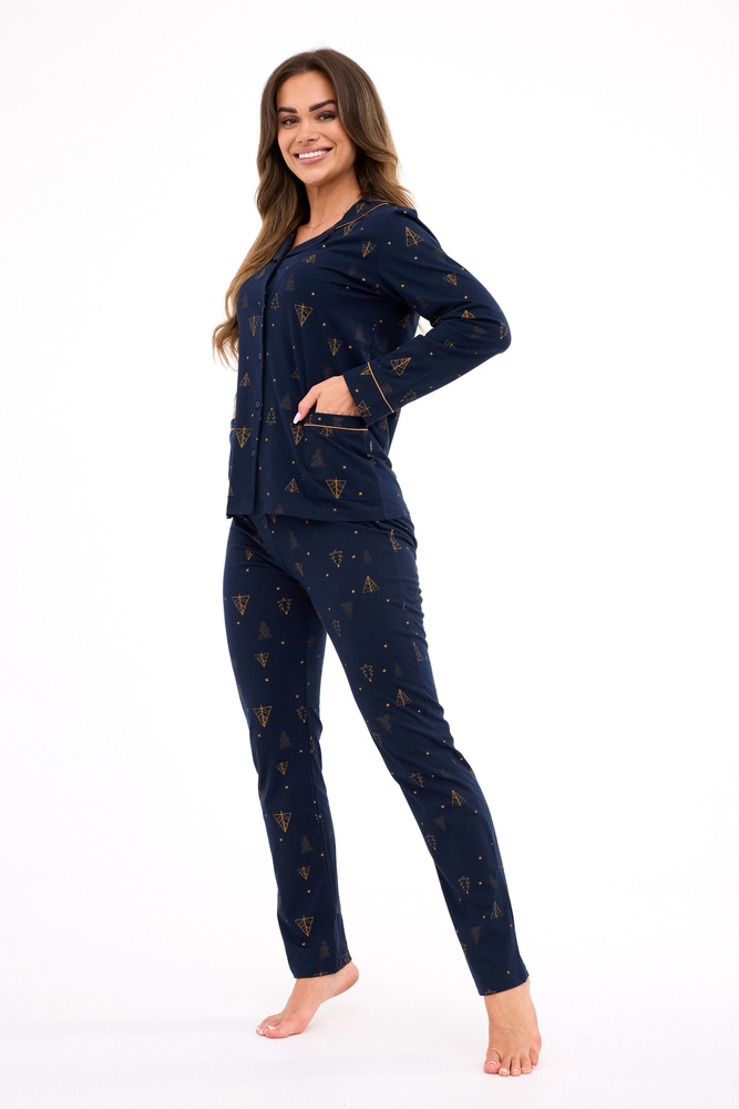 Zlato by Cornette je luxusní, elegantní dámské pyžamo určené pro ženy, které se rády cítí výjimečně - i o vánočních svátcích. Tmavě modrá barva doplněná jemnými zlatými akcenty vytváří mimořádně stylový zimní vzhled.