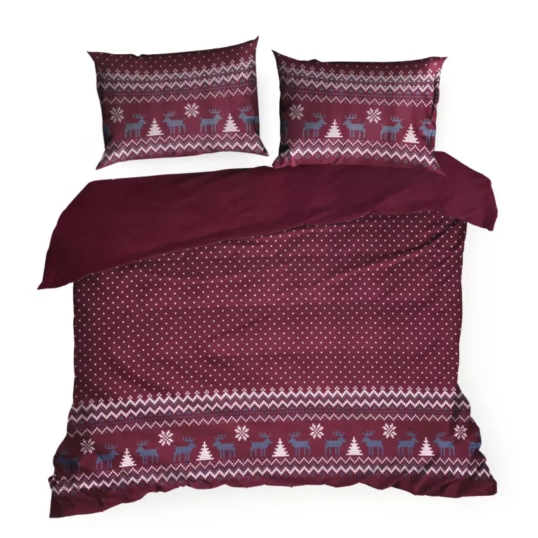 Matt Vánoční povlečení z mikrovlákna Eurofirany bordó - zdobené potiskem ve skandinávském stylu