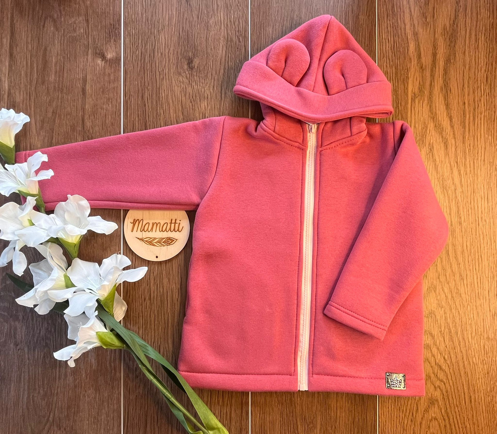 Barva malaga (odstín mezi růžovou a fialovou) dodává mikině jedinečně půvabný a dívčí charakter. Ideální na procházky, do školky nebo školy.