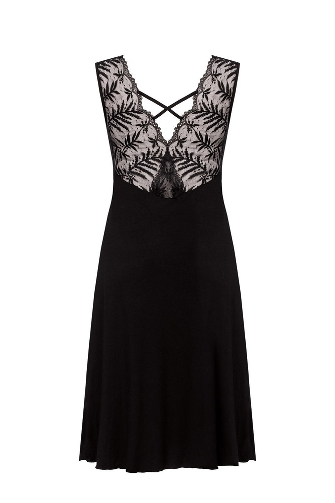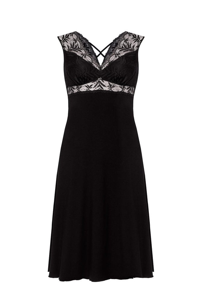 Noční košile Petra KM29 Mefemi by Nipplex černá- viskóza, krajka, délka do lýtek