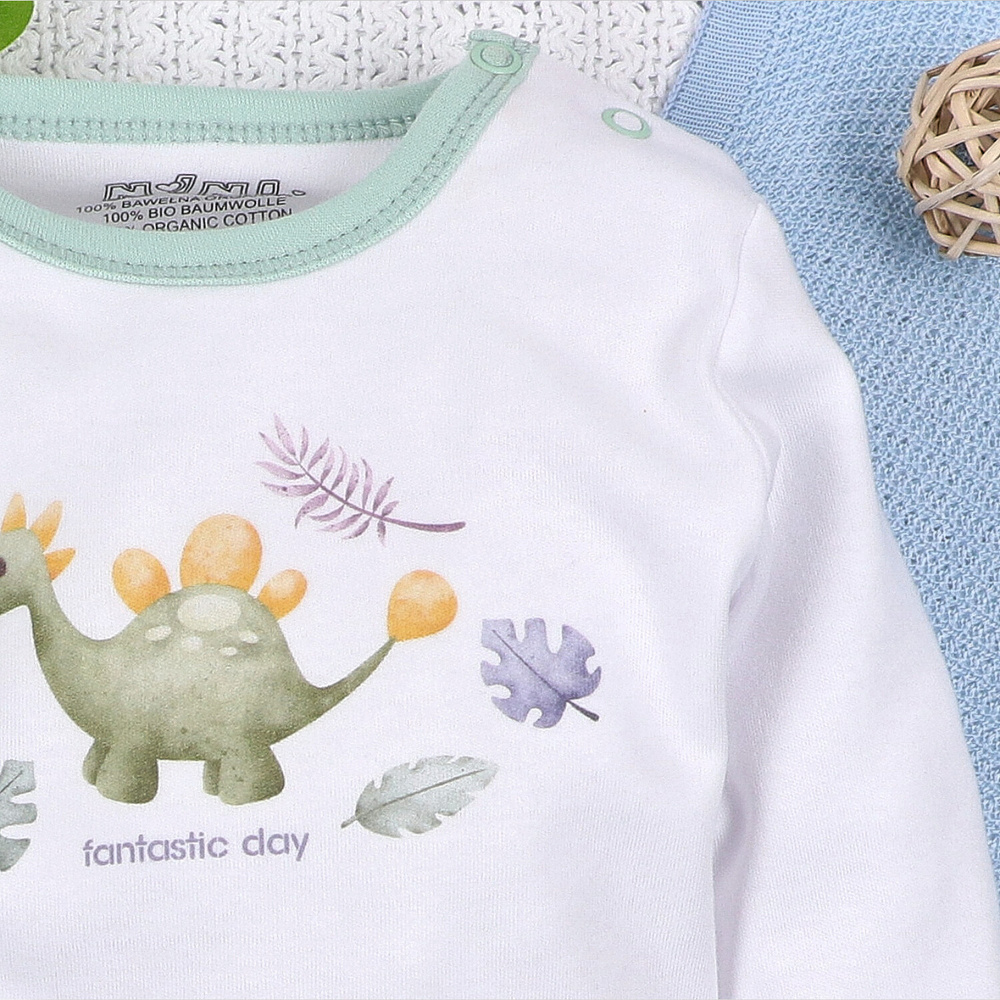 - Dětské body Nini Dino Explorer - 100% organická bavlna, dlouhý rukáv, pohodlné zapínání na patentky.