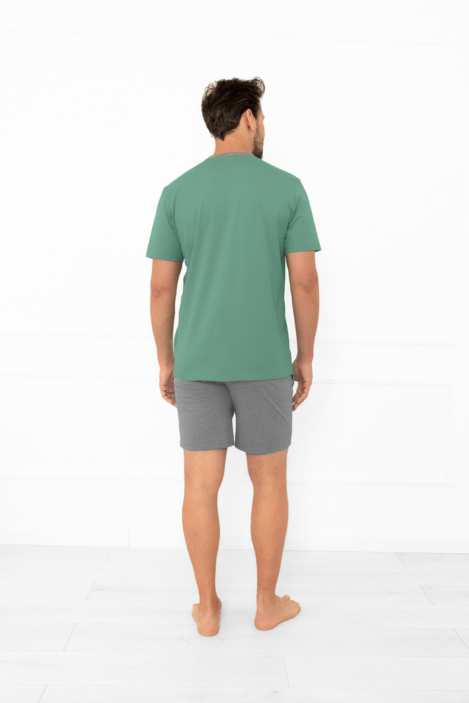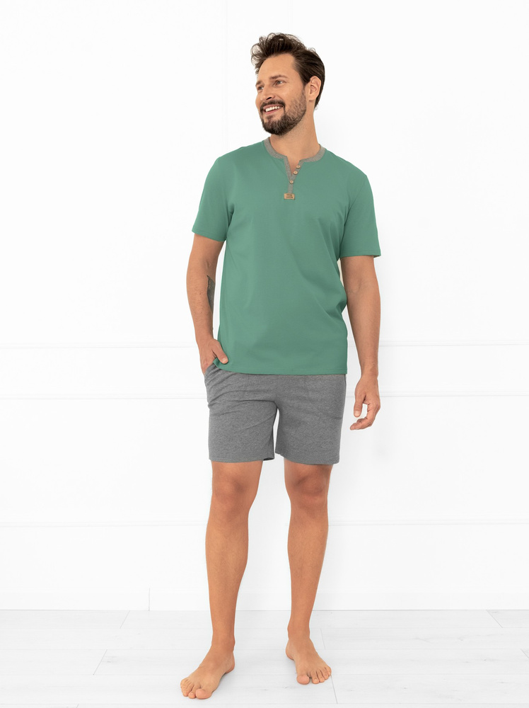 • Kratší pánské pyžamo Julius by Italian Fashion - košile s výstřihem do V a knoflíky, šortky s kapsami.
