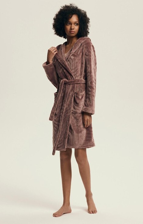 43602 Devyn Dámský župan s kapucí Henderson mahagon - krátký, teplý, velur
